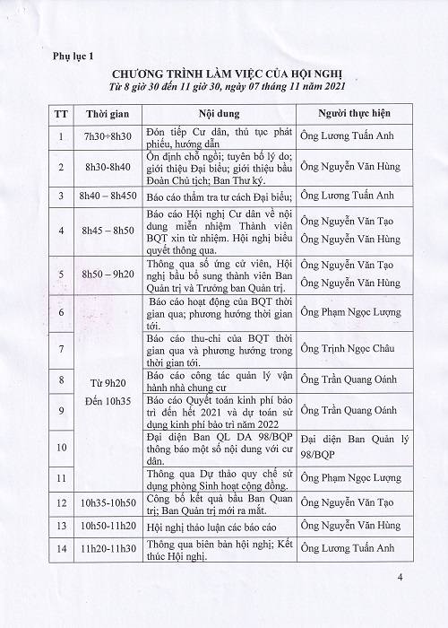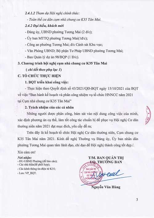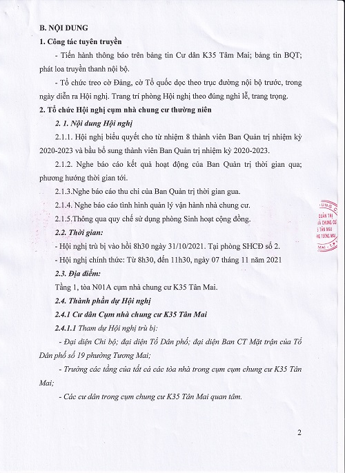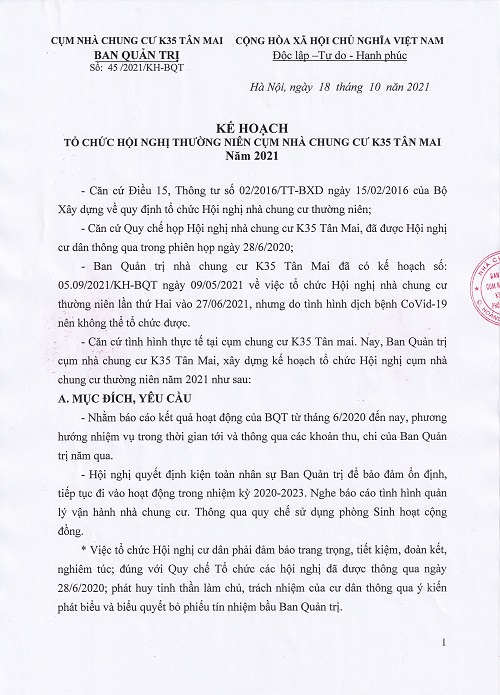 KẾ HOẠCH TỔ CHỨC HỘI NGHỊ THƯỜNG NIÊN CỤM NHÀ CHUNG CƯ K35 TÂN MAI Năm 2021