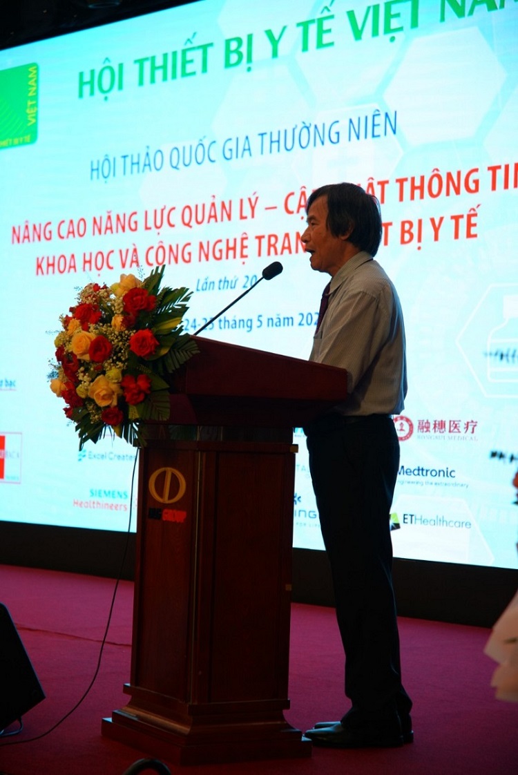 Phát biểu tại Hội thảo, Phó Chủ tịch kiêm Tổng thư ký Hội Thiết bị y tế Việt Nam ông Hà Đắc Biên cho biết: thời gian qua, Hội Thiết bị Y tế Việt Nam luôn xác định công tác đào tạo, nâng cao kiến thức và kỹ năng chuyên ngành cho hội viên là nhiệm vụ trọng tâm và xuyên suốt trong quá trình hoạt động và phát triển của Hội. Bên cạnh việc tổ chức các hội thảo quốc gia thường niên nhằm nâng cao năng lực quản lý, cập nhật thông tin khoa học công nghệ thiết bị y tế, Hội cũng thường xuyên phối hợp với các nhà sản xuất thiết bị y tế lớn trên thế giới tổ chức các hội thảo, tập huấn giới thiệu công nghệ, sản phẩm thiết bị y tế mới cho các hội viên