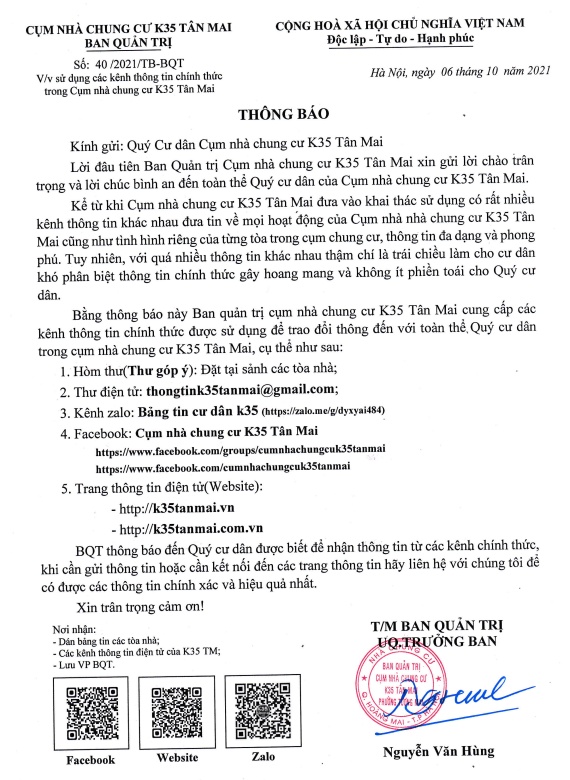 Sử dụng các kênh thông tin chính thức trong Cụm nhà chung cư K35 Tân Mai